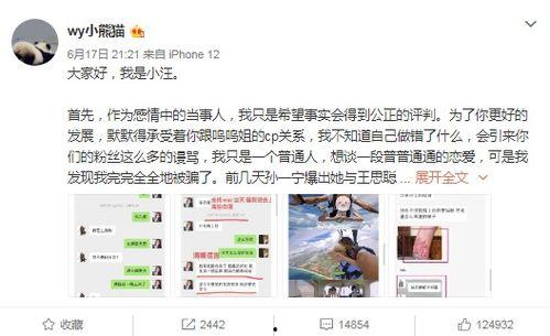 这位神秘的前任在社交媒体上发文,声称自己与孙一宁有过一段刻骨铭心的恋情。他详细描述了两人相识、相恋、分手的全过程,言语间充满了对孙一宁的怀念和惋惜。他还透露,这段感情中,孙一宁曾因为事业繁忙而忽略了他们的感情,这让前任倍感心酸。